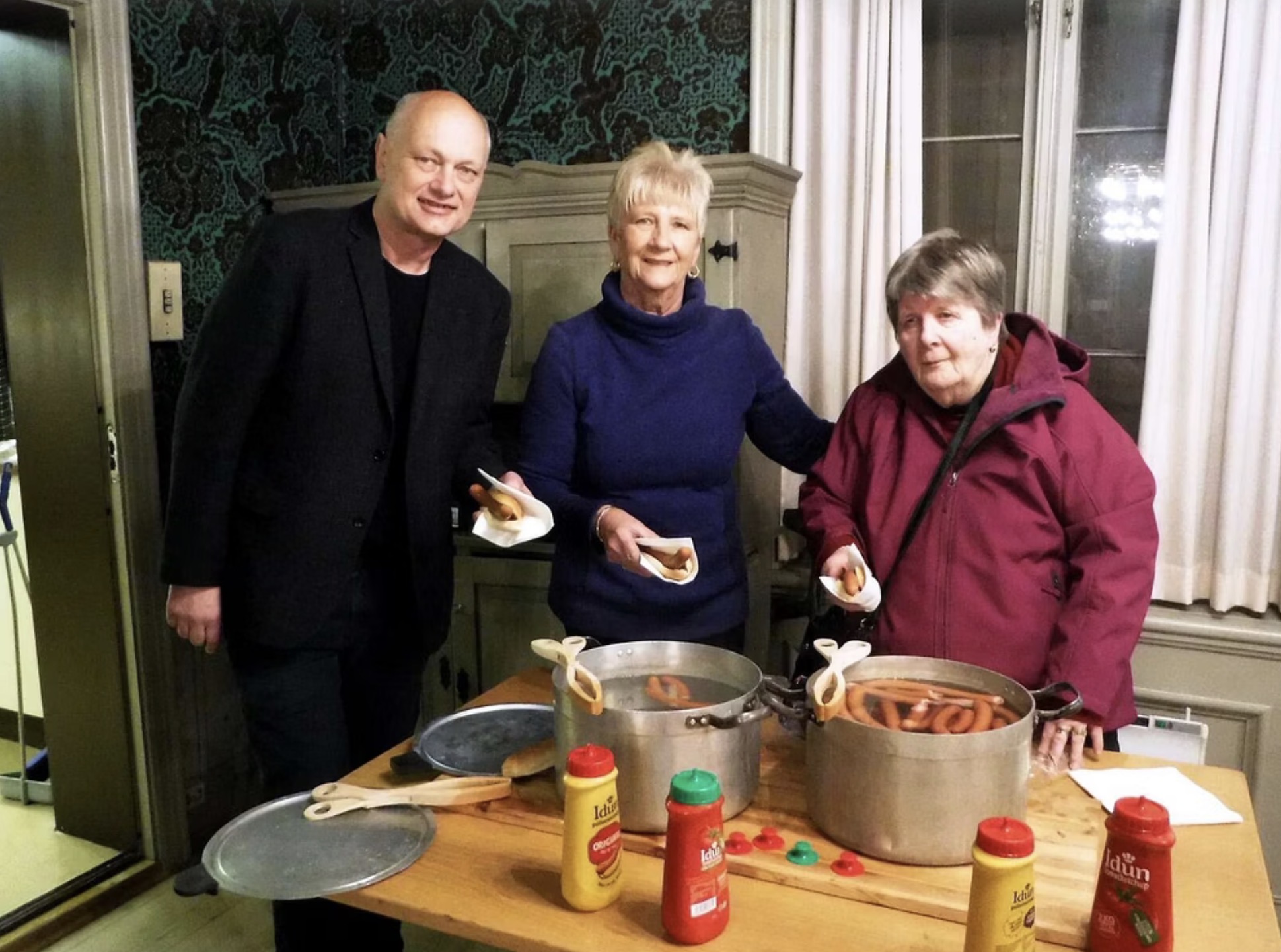 Lansering av Arendal historielags årbok «Sånn var det» i 2017. Sammen med Solveig Urban og Arnhild Øya i forbindelse med min artikkel om deres mor Gerda Øia, som drev en populær pølsekiosk i Arendal i 28 år. Foto: Guðný Scheving